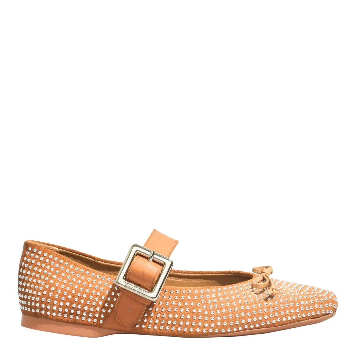 Sapatilha Feminina Santa Lolla em Couro Doce de Leite – Delicadeza Sofisticada com Brilho Elegante